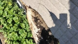 2026年2月4日 大根を収穫。 長さはちょっと短いですが、しっかり大根でした。 大根スティックにして食...