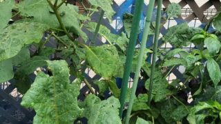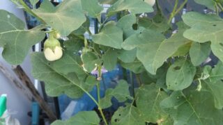 2025年9月20日 丸茄子の葉っぱがやや元気がない感じです。 葉っぱにハリがないですね。 白茄子はまだまだ元気です。 どこ...