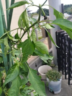 トウガラシ2025(18)どうなんだろう? 2025/11/3 トウガラシ 2025年10月27日 タバコガの幼虫に実がやられてから、実を収穫して、農薬をまいて、さてどうなんだろう。 これで復活してくれるとよいのですけど。 にほんブログ村 プランター菜園ランキング