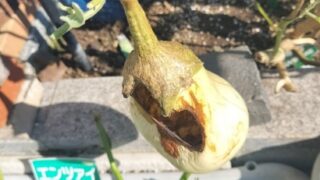 2025年11月15日 あの元気だった白ナスが、そろそろ収穫をしようとしたら中身が空っぽでした。 こんなことある...