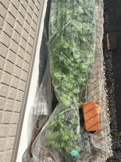 葉っぱがぐんぐん大きくなっていってネットの中がぐちゃぐちゃです。