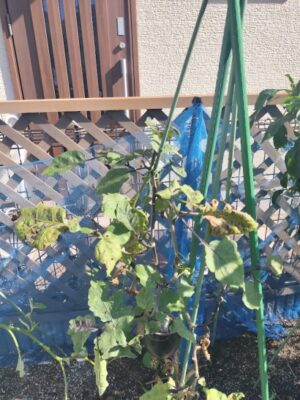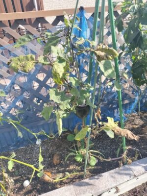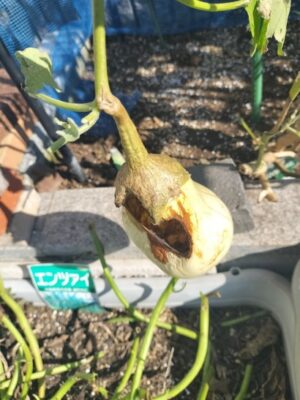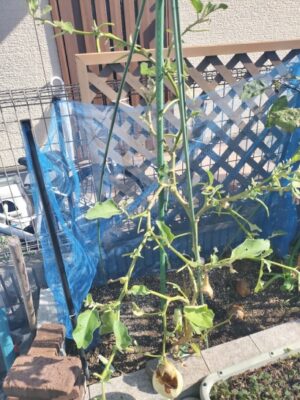 丸ナスのほうも実がついていましたが、どうも腐っています。