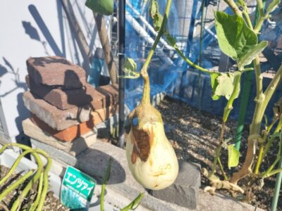 あの元気だった白ナスが、そろそろ収穫をしようとしたら中身が空っぽでした。