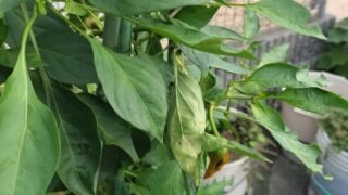 2025年10月18日 トウガラシが相変わらず元気がなく、よく見ていたら実に穴があいています。 結構な量の実が穴が開いて枯れ出...
